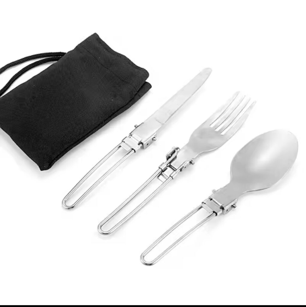 Adventure hub Camping Fork Spoon Outdoor Tableware Foldable Ultralight Stainless Steel Set Of Dishes For Camping Outdoor Cooking