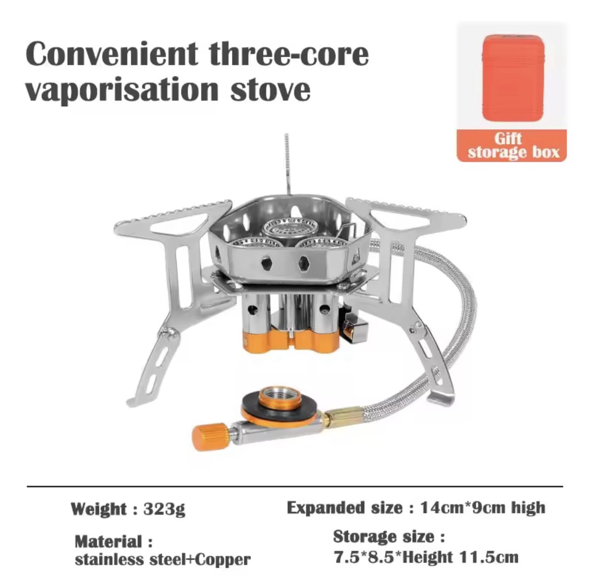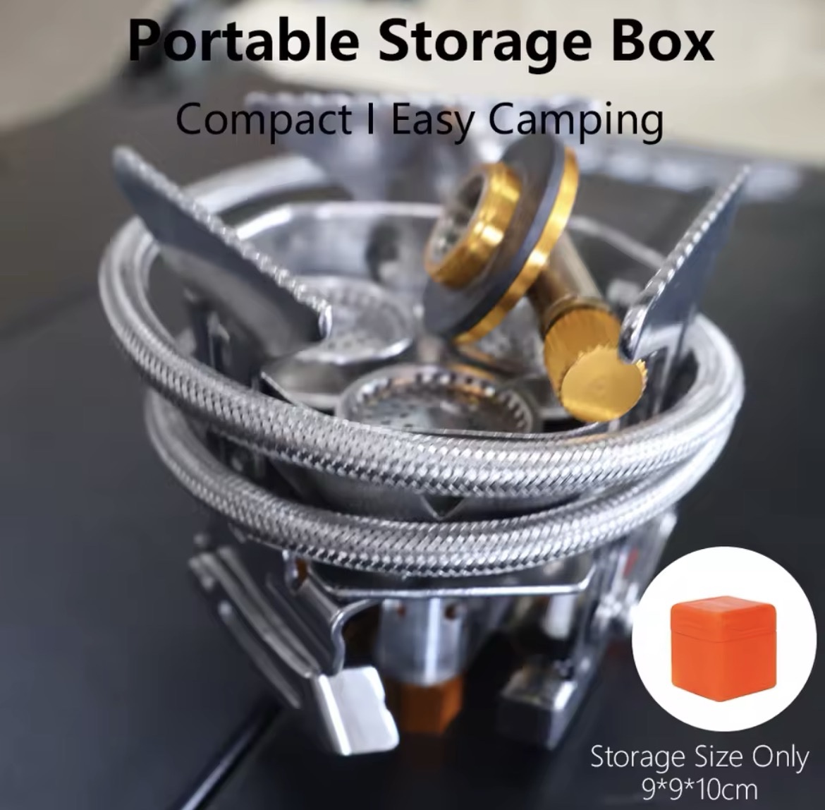 1. Foldable camping stove, package with carry box and easy carrying.