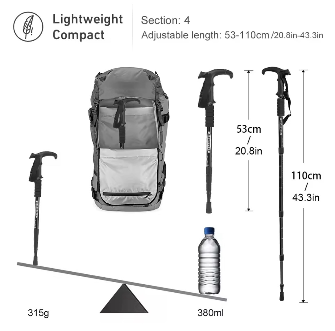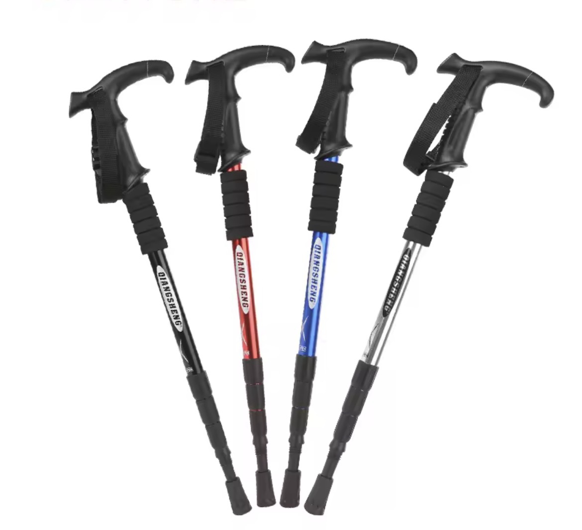 Outdoor Folding Trekkings Pole 4-Section Portable Walking Hiking Telescopic Stick Lig