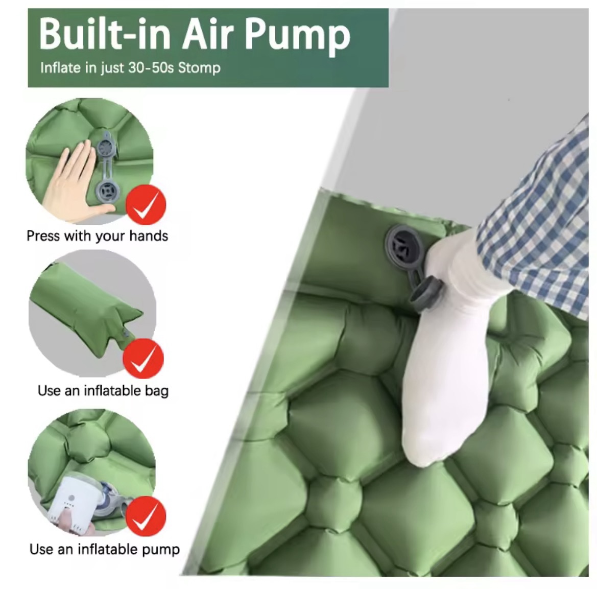 Single person foot pump inflatable sleeping mattress